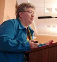 In the afternoon, Sister Ardeth Platte (Grand Rapids) and Sister Carol Gilbert (Grand Rapids) presented ways in which they live out the four focal points, with an emphasis on living justly. According to Sister Carol, “Sixty cents of every dollar of U.S. spending goes to the military. Education and social services each receive less than 10 cents of every dollar. One way to live justly and speak truth to power is to contact your lawmakers about where you want Federal funding to go.” This point was really felt as the sisters face significant budget cuts in their ministries due to national, state, local and archdiocesan budget cuts supporting education and social services. “Praise to the Spirit of Justice, which blew throughout Chapter!” exclaimed Sister Diane Forrest, who chaired the Chapter Committee. The focus of Sunday morning was, “Celebrating the Grace of Preaching,” which began with liturgical preaching by Sister Michaela Connolly. Sister Margaret Palliser (Sparkill), then presented on the topic of preaching from the pulpit of our lives using examples of well-known Dominicans, as well as some that are less remarkable historically, but certainly demonstrated preaching God’s love in their own way.