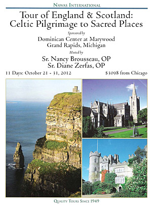 The Dominican Center at Marywood, a ministry of Dominican Sisters ~ Grand Rapids in Michigan, is sponsoring a tour of England and Scotland, with a focus on the history of Celtic spirituality and mysticism. Highlights of this pilgrimage include: