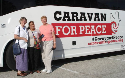 The Dominican Sisters of Houston hosted the caravan Aug. 26–27. Photo courtesy of Ceil Roeger, OP. Caravan for Peace August 17, 2012 To: Dominican Family USA Our dear sisters and brothers in St. Dominic, We write you from Mexico seeking your solidarity with the Mexico/United States CARAVAN FOR PEACE which has just begun this week. The caravan will travel Aug. 12–Sept. 12, 2012 and traverse the U.S. from San Diego across the Mexican US border and then continue north and east to Washington D.C. It is already on the road. See details below and please join us! The participants in this caravan are primarily family members of the victims of violence. Javier Sicilia is leading the group of parents, siblings and friends of the disappeared and assassinated in Mexico. His son was killed in Cuernavaca in March 2011. Additionally activists in Mexico and the United States are with the caravan organizing the logistical needs. Global Exchange from California is a key organizer from the U.S. and will have staff members with the caravan. Follow the caravan at www.caravanforpeace.org The caravan will engage the public in dialogues on bi-national drug policies, money laundering, the sale of arms from the U.S. to Mexico and the awareness of the thousands of victims from the “war on drugs.” Mexican Dominicans participated widely in 2011 in two caravans within Mexico. Fray Miguel Concha, OP; Bishop Raul Vera OP; Sr. Aline Ussel, OP; Fr. Gonzalo Ituarte, and many other Dominican laity, sisters and friars journeyed north and south in Mexico in solidarity with the families of the victims. These caravans of compassion gave voice to the cries and agony of the distraught family members and raised awareness of the impunity in the acts of violence. Your participation now as Dominicans in the United States is strongly encouraged. As Dominicans in Mexico, we invite, encourage you, to reach out to your neighbor Mexico and stand with us for justice. The staff at Global Exchange have been key in organizing this caravan in the U.S. Visit their web site for the route details, and ways you can participate. Those in the caravan from Mexico need housing, meals, places to speak, publicity, musicians, artists and financial support. As Dominicans in Mexico, we encourage you to make the Dominican family presence known in this significant caravan for peace and dignity. Jesus calls us in the Parable of the Good Samaritan to reach out to our neighbor, to take time and be a healing presence to those in need. Stand for justice on these key issues around drugs and arms sales. Together we can work binationally for systemic changes on these key issues. Come join us on this caravan for peace and nonviolence. Help spread the word of this event through your technology communication networks. We ask you to keep those participating in the caravan in your prayers these next weeks. If you would like to participate, please contact Kathy Long, OP. Thank you and peace! Your sisters and brothers In St. Dominic, Dominican Family Peace and Justice Commission Mexico, |