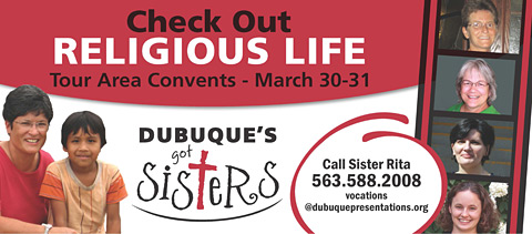 Sinsinawa Dominicans Are you a woman interested in religious life? Then sign up for "Dubuque's Got Sisters!" and get ready for a unique experience. Join Dubuque-area Sisters for a 24-hour tour of four Iowa and Wisconsin convents and share experiences through praying, dining, and storytelling. Local transportation will be provided, and there is no fee to attend. The "Dubuque's Got Sisters!" event begins Friday, March 30 at 5 p.m., and ends Saturday, March 31 at 6 p.m. To register or for more details, e-mail Sister Rita Cameron, PBVM, at vocations@dubuquepresentations.org or call her at (563) 588-2008. "Dubuque's Got Sisters!" is sponsored by the Sisters of Charity of the Blessed Virgin Mary, Sisters of the Presentation of the Blessed Virgin Mary, Dubuque Franciscan Sisters, and Sinsinawa Dominican Sisters. The evening will begin with prayer and overnight hospitality on Friday at Mount Loretto in Dubuque, Iowa, with the Sisters of the Presentation. On Saturday, the group will visit the Sisters of Charity of the Blessed Virgin Mary, the Dubuque Franciscans, and the Sinsinawa Dominicans, Sinsinawa, Wisconsin. "Come join us for Dubuque's Got Sisters to pray with us, eat with us, talk with us,” said Sister Jeri Cashman, OP, who will accompany the tour group. “You will witness the faithful living of vows, the beauty of our community and ministry, and the graced life of our interconnectedness!” Catholic Sisters, who live and work in your community, invite you to learn more about their work by visiting them online at www.facebook.com/catholicsisters. |