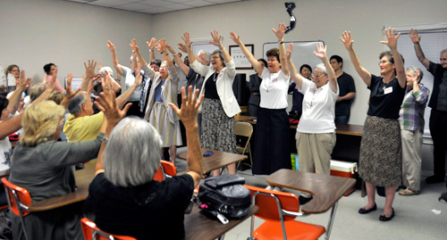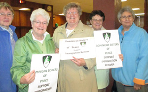 The Nuns on the Bus arrived in Atlanta, Georgia, June 5, to the welcome of at least 100 people, including six Dominicans: Marie Sullivan, OP (Sinsinawa), Aneesah McNamee, OP (Adrian), Patty Caraher, OP (Sinsinawa), Liz Sully, OP (Sinsinawa) and Jeffery Ott, OP (Southern Province). In Houston, Texas, June 7–8, the travellers enjoyed the hospitality of the Dominican Sisters of Houston. Sinsinawa Dominican Sister Bernadine Karge, OP, will be boarding the bus in San Diego, California, for the final leg of the trip, from June 13–18. Sister Bernadine has taught ESL classes in Chicago, New York City, and Washington, D.C., and witnessed the injustice of the U.S. system of immigrant detention. For the past 30 years, she has been practicing immigration law in Chicago as an immigration staff attorney with the Chicago Legal Clinic. |