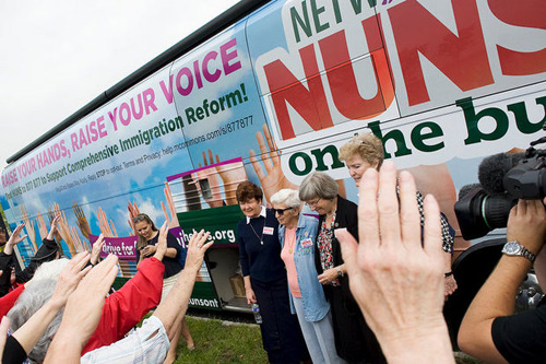 Nuns on the Bus II NETWORK’s Nuns on the Bus is travelling from Connecticut to California to promote common-sense immgration reform. Dominicans are supporting the effort both on and off the bus, every step of the way. The tour began May 28 in New Haven, Connecticut, and will end with a rally in San Francisco, California, on June 18. Sister Arlene Flaherty, OP (Blauvelt) was among the seven sisters who participated in the first leg of the 6,000-mile journey. She writes about her experience in the Dominican Sisters of Blauvelt blog.