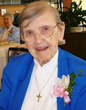 Sister Mary Nona McGreal made her first religious profession as a Sinsinawa Dominican Sister March 8, 1933, and her final profession Aug. 5, 1936. She taught in elementary schools of the congregation for eight years, including St. Clement, Sheboygan, Wis., 1933; St. Brendan, Chicago, 1933–1937; and St. Thomas the Apostle, Chicago, 1937–1941. Sister Mary Nona completed her graduate studies at the Catholic University of America, receiving her Ph.D. in 1951. With Sister Mary Joan Smith, OP, she developed a widely used new curriculum for U.S. Catholic schools, publishing the three-volume work “Guiding Growth in Christian Social Living: A Curriculum for the Elementary School” during the 1940s. In 1950, Sister Mary Nona became the president of Edgewood College, Madison, Wis. During her 18 years as president, she dramatically transformed the small college, adding new buildings, increasing and diversifying student enrollment, developing a strong faculty, achieving national accreditation and establishing a core curriculum. In 1968, she was elected by her sisters to serve as vicaress of the Sinsinawa Dominican Congregation, and she held this post of leadership until 1977. From 1977 to 1984, Sister Mary Nona worked both in Rome and in the United States, preparing the official Positio, a comprehensive summary of all the documentation regarding the Cause for Beatification of Father Samuel Mazzuchelli, OP, founder of the Sinsinawa Dominican Congregation and pioneer priest on the 19th century Midwest frontier. The completion of the Positio was a crucial step in the long process leading to Pope John Paul II’s declaration in 1993 that Father Mazzuchelli be known as “Venerable,” the first step toward canonization in the Catholic Church. From 1984 to 2007, she worked with Project OPUS (research regarding the history of the Order of Preachers in the United States), serving as the project’s director from 1989 to 2006. She was honored in 2006 with having the OPUS headquarters on the Dominican University, River Forest, Ill., campus named the Mary Nona McGreal, OP, Center for Dominican Historical Studies. Currently, the McGreal Center houses an archive of history of the various branches of the Dominican Order in this country and is the hub of continuing research into that history. In 2008, Sister Mary Nona was the first woman to be named to the Historical Commission of the Order of Preachers. Besides the Guiding Growth in Christian Social Living books, Sister Mary Nona authored the biography “Journeyman, Preacher, Pastor, Teacher—Samuel Mazzuchelli: American Dominican” and was the general editor of “Dominicans at Home in a Young Nation: 1776-1865,” Volume I of “The Order of Preachers in the United States: A Family History.” Sister Mary Nona was born April 20, 1914, in Waukegan, Ill., the daughter of Thomas and Margaret (Kehoe) McGreal. Her parents; two sisters, Margaret Dolan and Alice O’Shea, and two brothers, Thomas McGreal and Robert McGreal, preceded her in death. She is survived by a sister, Ruth O’Grady; nieces; nephews; and her Dominican Sisters with whom she shared life for 80 years. A wake and remembering service was held Monday, March 25. The funeral Mass was Tuesday, March 26 at Sinsinawa Mound, followed by burial in the Motherhouse Cemetery. Broadcasts of Sister Mary Nona’s wake and funeral are available for viewing online through the Sinsinawa Dominican Sisters' livestream video archive. Click on the “On Demand” tab in the upper right column, then click on title of the broadcast you wish to view. Memorials may be made to the McGreal Center, Dominican University, 7900 West Division St., River Forest, IL 60305. |