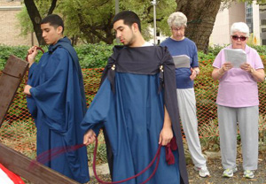On Good Friday afternoon, members of the local peace and justice community came together in downtown Houston, Texas, to walk the Stations of the Cross commemorating the passion and death of Jesus. Fr. Richard Wahl, CSB, led the opening prayer, and students from St. Christopher Parish enacted the stations. The annual event is sponsored by Pax Christi, which extended an open invitation to organizations addressing crucial justice issues of our times to lead the stations. The Dominican Sisters of Houston led Station 3, “Jesus Falls the First Time.” Their reflection focused on the realization that just as Jesus suffered from the weight of the cross, Earth, our home, is suffering from the weight of environmental devastation. We walked with Jesus from the beginning when he was condemned until he was laid in the tomb. Just as it did not end there for Jesus, our journey did not end there. We celebrated the 15th station, “The Resurrection,” reminded of the hope that drives our work for justice and peace. — Sister Ceil Roeger, OP (Houston)
